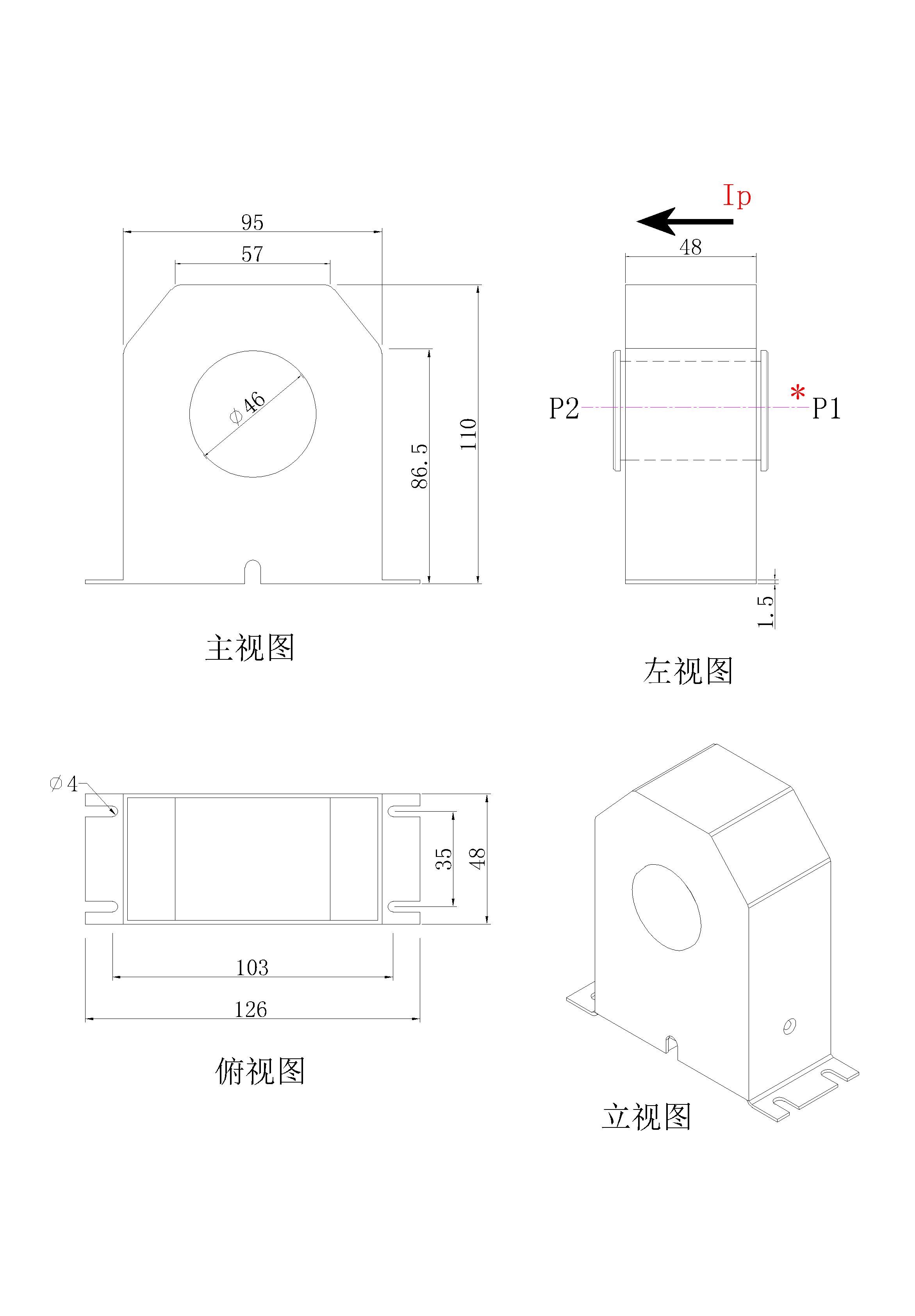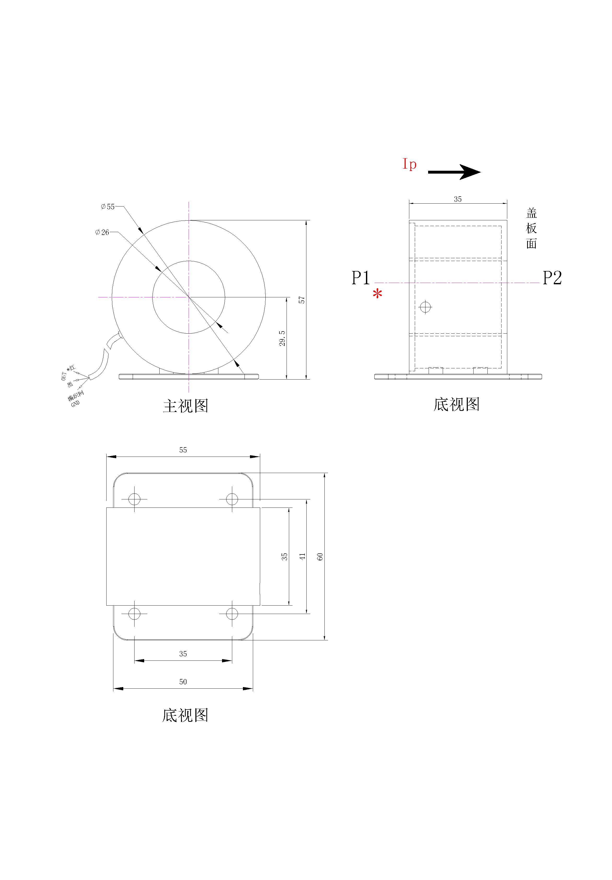 注:可按客户的要求定制(穿心孔径、外形尺寸、参数变比)