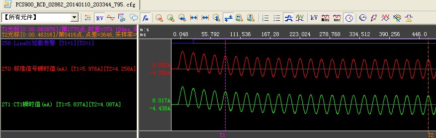 1. 周期分量:3倍额定电流(In),Tp=100ms,偏移系数cosθ=1.0,测试50次后波形图: