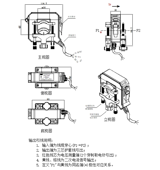 外观为双拼接颜色,可通过颜色判别安装方向和相别(A相-黄、B相-绿、C相-红)